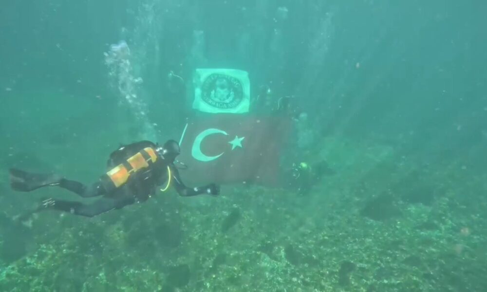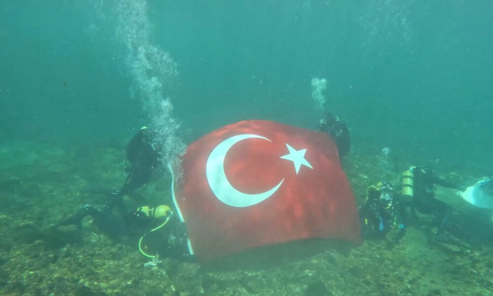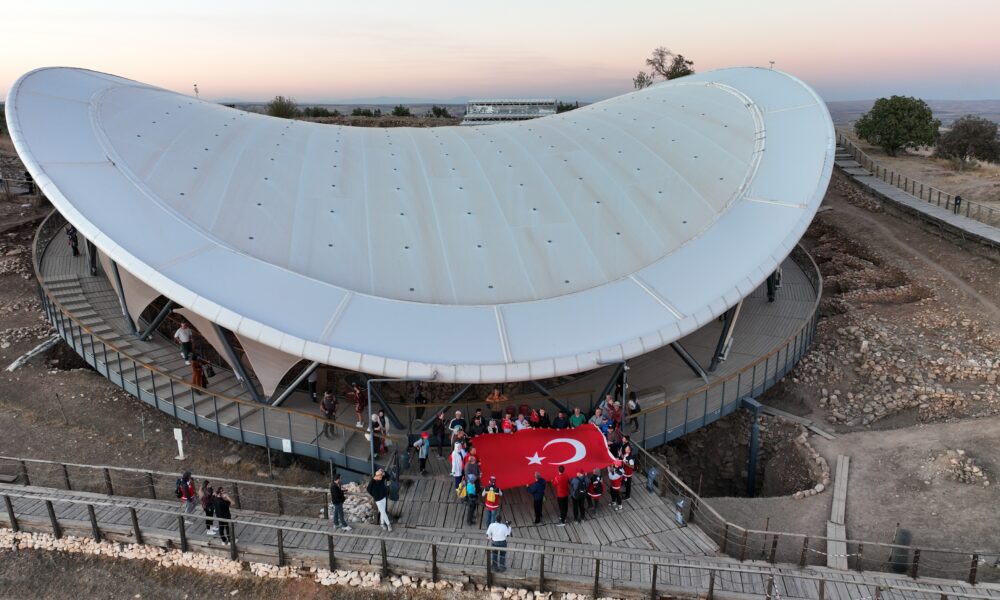 Şanlıurfa’da gençler Göbeklitepe’ye yürüdü, dalgıçlar su altında bayrak açtı