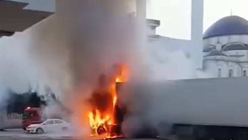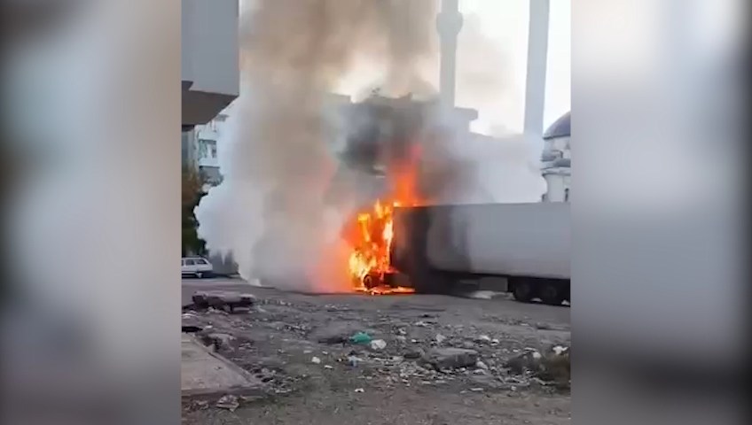 Mezra Mahallesi’nde, Yeni Cami önünde park halinde bulunan TIR’da henüz belirlenemeyen bir nedenle yangın çıktı. Alevleri fark eden çevredekiler, TIR’ın yakınında bulunan araçları bölgeden uzaklaştırmaya çalıştı. İhbar üzerine olay yerine sevk edilen itfaiye ekipleri, patlamayla birlikte büyüyen ve çekici kısmını tamamen saran alevlere müdahale etti. Yangın kısa sürede kontrol altına alınarak söndürüldü. Yangında TIR kullanılamaz hale geldi.