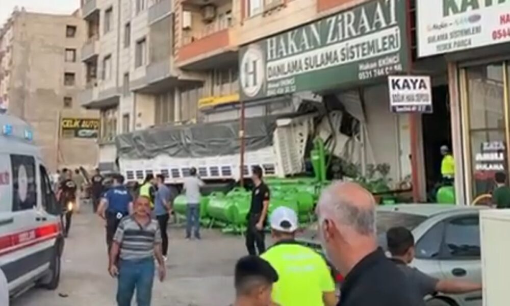 Şanlıurfa’da TIR’ın araçlara çarpıp iş yerine girdiği kaza kamerada: 3 yaralı