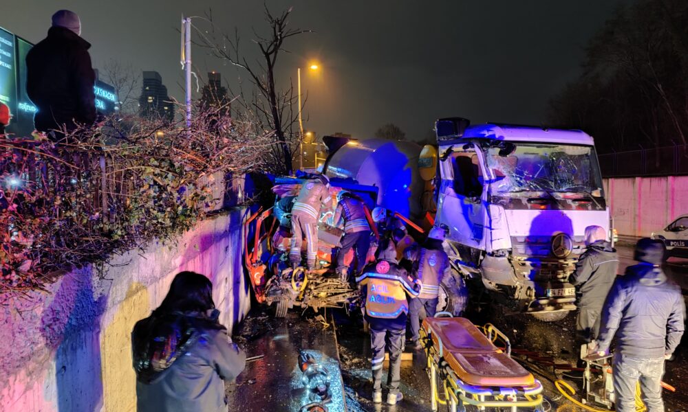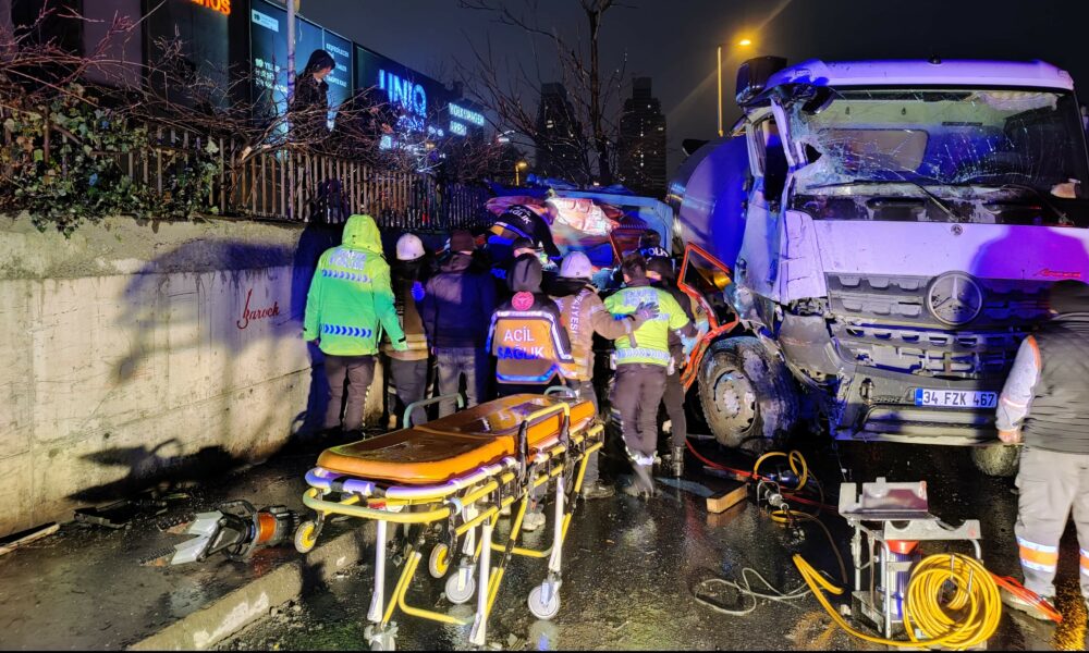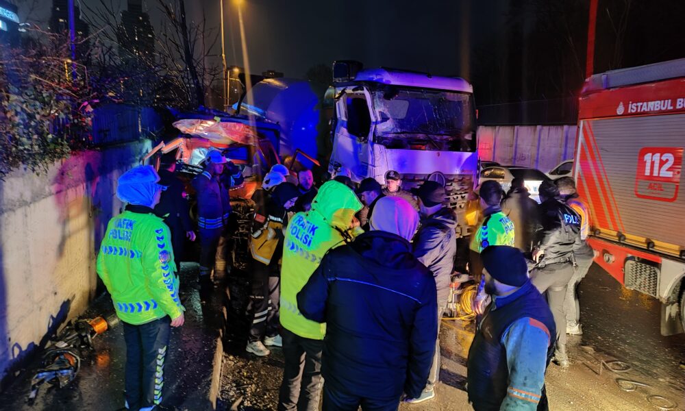 Sarıyer’de, karşı yöne geçen beton mikseri kamyonete çarptı:1 ağır yaralı