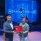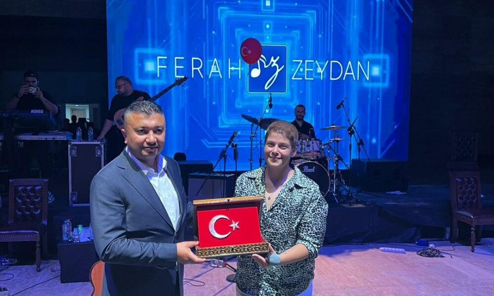 • Şarkıcı Ferah Zeydan'a Türk bayrağı hediye edildi. Fotoğraf: Hatay, (DHA)