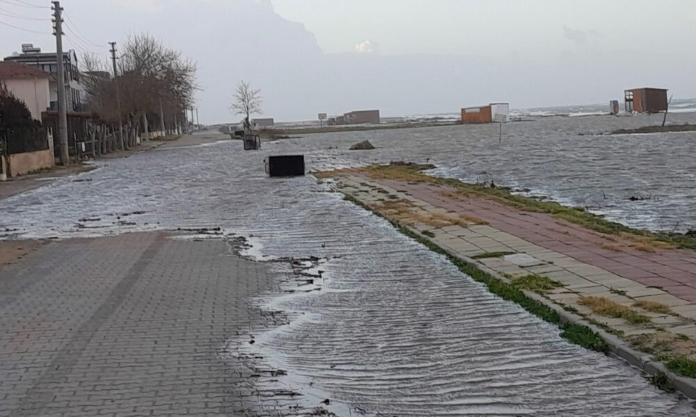 Saros Körfezi’nde kuvvetli lodos; işletmeler su altında kaldı