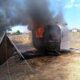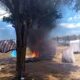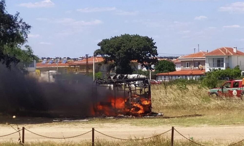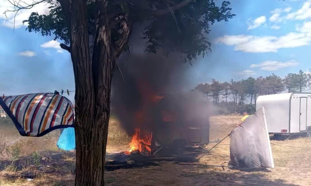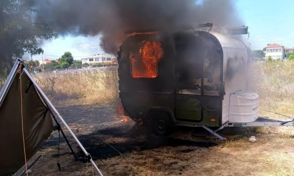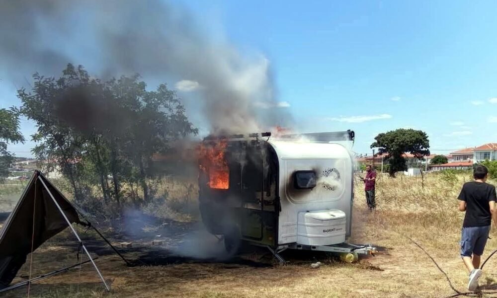 Saros’ta park halindeki çekme karavan alev alev yandı