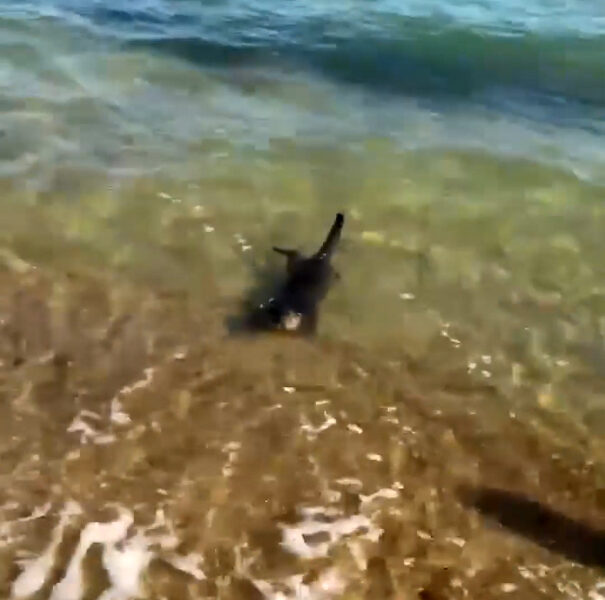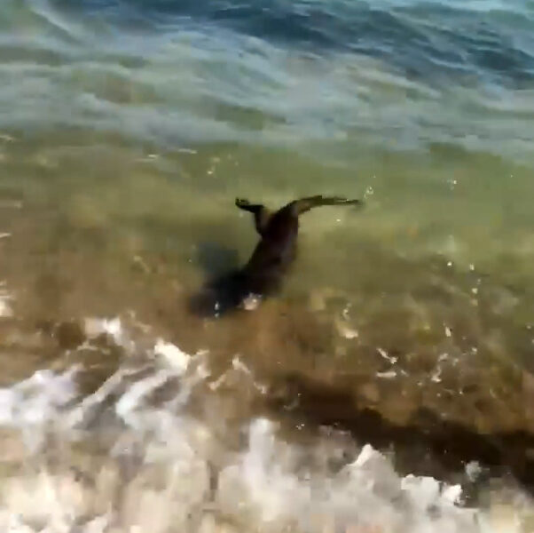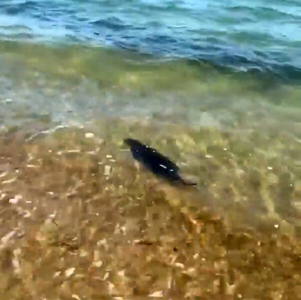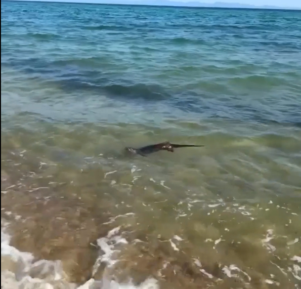 Gülçavuş köyü sahiline gelen vatandaşlar, kıyıda su samurunun yüzdüğünü görerek, o anları cep telefonuyla görüntüledi. Bir süre kıyıda yüzen ve çocukların ilgi odağı olan su samuru, daha sonra açığa giderek gözden kayboldu.