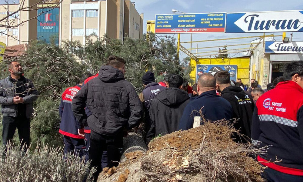 SAADET Partisi Burdur Belediye başkan adayı Adnan Ersan (64) ve oğlu, seçim çalışması sırasında devrilen ağacın altında kaldı. Ekiplerin çalışmasıyla kurtarılıp hastaneye kaldırılan yaralılardan Adnan Ersan’ın ayağının kırıldığı belirtildi. Olay, saat 13.00 sıralarında Özgür Mahallesi Oto Tamirciler Sitesinde meydana geldi. Saadet Partisi Burdur Belediye başkan adayı Adnan Ersan, seçim çalışmaları kapsamında iş yerlerini ziyaret ederken aşırı rüzgar nedeniyle yaklaşık 5 metre boyundaki andız ağacı devrildi. Adnan Ersan ile çalışmalara katılan oğlu belediye meclis üyesi adayı Taha Ersan (38), ağacın altında kaldı.İhbar üzerine olay yerine itfaiye ve sağlık ekipleri sevk edildi. Ağacın altından çıkarılan Adnan Ersan ve oğlu Taha Ersan ambulansla Burdur Devlet Hastanesine götürüldü. Adnan Ersanın sol ayağının kırıldığı ve tedavisinin sürdüğü, oğlunun ise durumunun iyi olduğu öğrenildi. Devrilen ağaç belediye ekiplerinin çalışmasıyla kaldırıldı.