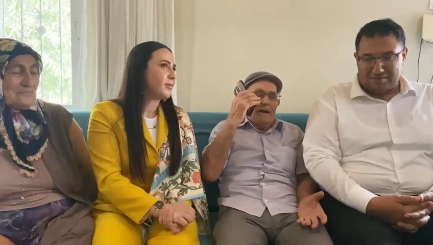 Konuşmanın devamında baba Durmuş Ünver, sağlıkta yaşanan devrime de dikkat çekerek, “Geçen gün hastaneye gittim. Kontrollerim bittikten sonra ödeme yapmak istedim. Senin paranın devlet ödedi dediklerimde ellimi koluma sallaya sallaya çıktım geldim. Cumhurbaşkanım Allah razı olsun” dedi.