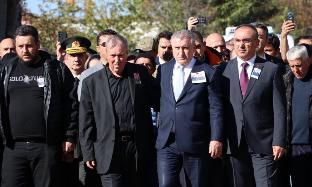 Gürcistan'da düşen uçakta şehit olan astsubay İlker Aykut, Tekirdağ'ın Muratlı ilçesinde son yolculuğuna uğurlandı. Törene Gençlik ve Spor Bakanı Osman Aşkın Bak da katıldı. Fotoğraf: Abdullah YALÇIN/Tekirdağ, (DHA)