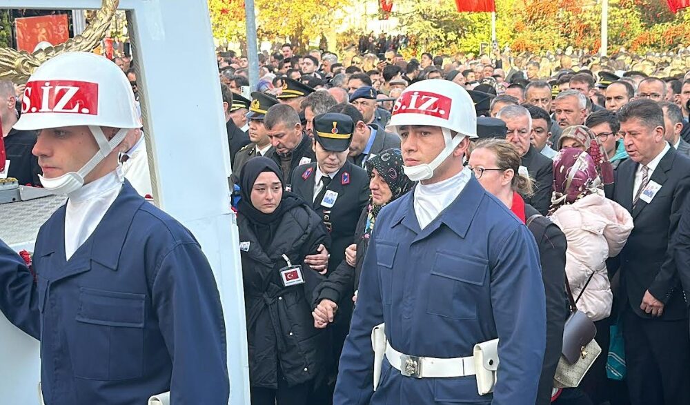 Şehit Hava Uçak Bakım Astsubay Üstçavuş İlhan Ongan, Bilecik’te son yolculuğuna uğurlandı. Şehidin kız kardeşi ağabeyinin kamuflajını giyerek cenazeye katıldı. Fotoğraf: Oğuzhan KILIÇ / Bilecik, (DHA)