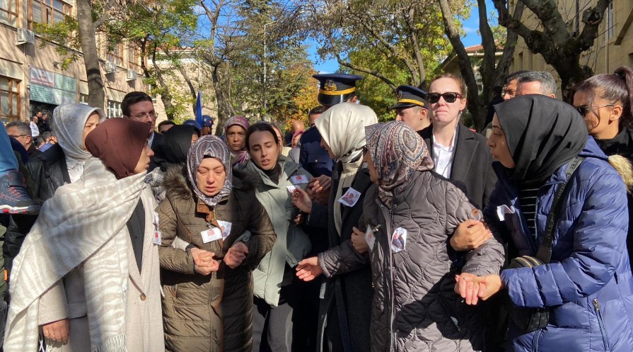 Şehit Hava Uçak Bakım Üsteğmen Emre Mercan'ın (27) cenazesi memleketi Eskişehir’de toprağa verildi. Aile ve Sosyal Hizmetler Bakanı Mahinur Özdemir Göktaş, şehit annesi Ayşe Mercan’a destek oldu. Fotoğraf: Eskişehir, (DHA)