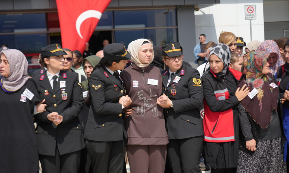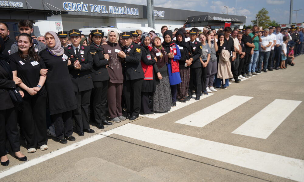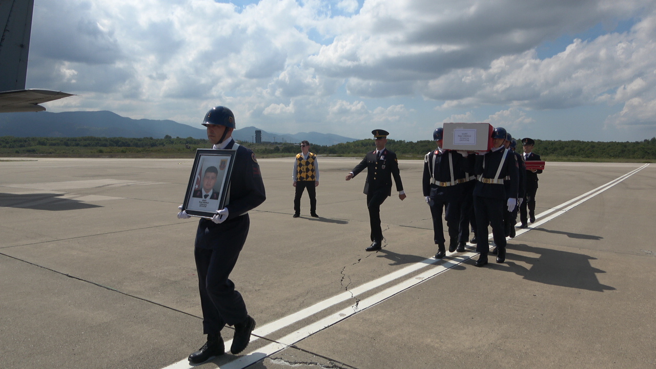 • Tunceli'nin Ovacık ilçesinde zırhlı aracın devrilmesi sonucu şehit olan 4 askerden Jandarma Uzman Çavuş Ömer Eroğlu’nun cenazesi, Kocaeli’nin Kartepe ilçesindeki Cengiz Topel Havaalanı’na getirildi. Fotoğraf: Nazım Özgün ERBULAN / Kocaeli, (DHA)