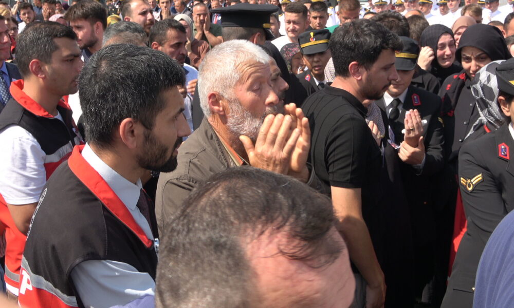 • Tunceli'nin Ovacık ilçesinde zırhlı aracın devrilmesi sonucu şehit olan 4 askerden Jandarma Uzman Çavuş Ömer Eroğlu’nun cenazesi, Kocaeli’nin Kartepe ilçesindeki Cengiz Topel Havaalanı’na getirildi. Cenazede şehidin babası Ali Eroğlu (Fotoğrafta), gözyaşl