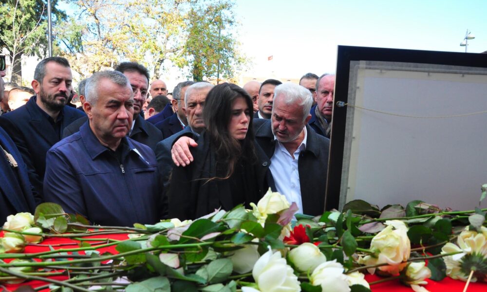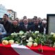 Şehzadeler Belediye Başkanı Gülşah Durbay'ın babası Osman Durbay (sağda), tabutun başında kızının yakın arkadaşı Çeşme Belediye Başkanı Lal Denizli'ye (ortada) sarıldı. Fotoğraf: Manisa,(DHA)