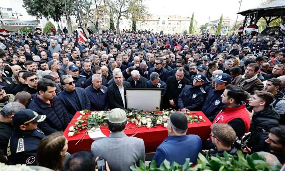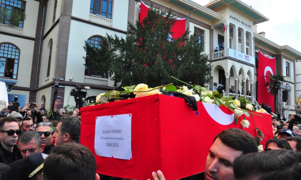 Manisa'da hayatını kaybeden Şehzadeler Belediye Başkanı Gülşah Durbay'ın cenaze namazı, Cumhuriyet Meydanı'nda kılındı. Fotoğraf: Manisa,(DHA)
