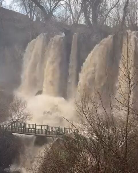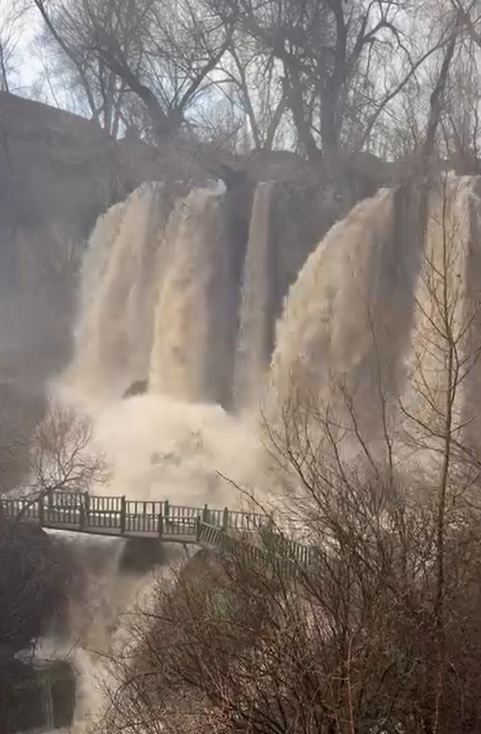 • Sivas'ın Gemerek ilçesinde yer alan bölgenin en önemli doğal güzelliklerinden biri olan Sızır Şelalesi bölgede oluşan sel suları etkisiyle en yüksek seviyeye ulaşırken, rengi de bulanık aktı. Fotoğraf: Sivas, (DHA)