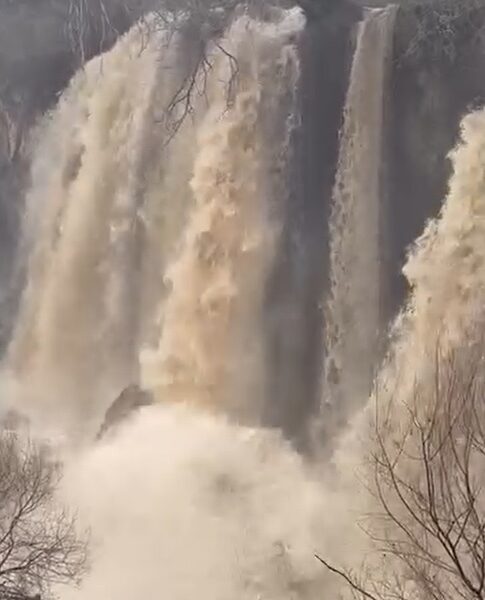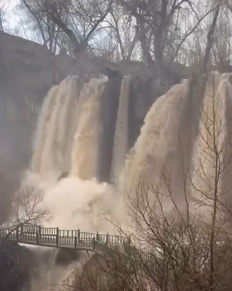 Sel suları nedeniyle Sızır Şelalesi, çamur renginde akmaya başladı