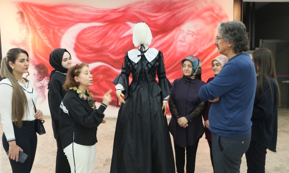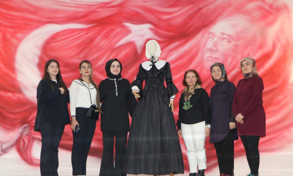 Öğrencilerinin hem derslerini takip ettiğini hem de kostüm için atölye çalışmalarına katıldığını belirten Doç. Dr. Sarı, “Çalışmayı yaparken 3 aşaması bizim için önemliydi. Birincisi tarih, ikincisi tasarım bağlamı, üçüncüsü ise tarih ve tasarım bağlamının orijinalini ve özünü yitirmeden gelmesi gerekiyordu. Önce kostüm form bağlamı olarak incelendi. Dönemin form özelliği, giysi özelliği, kumaş özelliği incelendi. Yapılan araştırmaların ardından bir hafta içerisinde kostüm tamamlandı. Bir müddet fakültemiz fuaye alanında sergilenecek olan kostümü Hemşirelik Fakültesi’ne hediye edeceğiz” diye konuştu.
