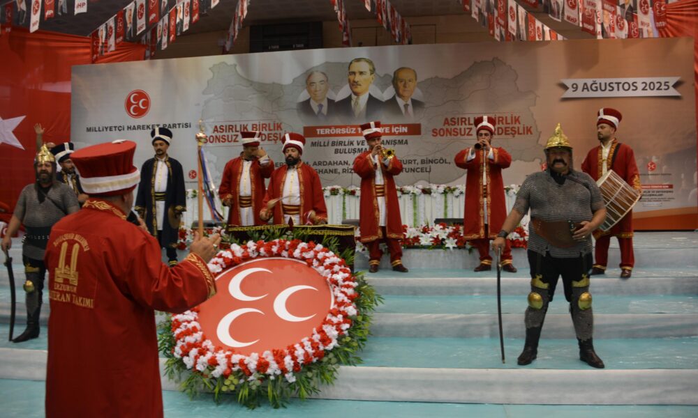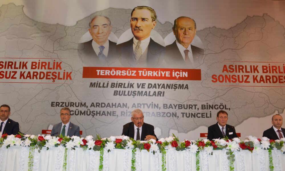 MHP Genel Başkanı Devlet Bahçelinin talimatı doğrultusunda, parti tarafından düzenlenen Terörsüz Türkiye İçin Milli Birlik ve Dayanışma Buluşmalarının ilki, Erzurumda Asırlık Birlik Sonsuz Kardeşlik temasıyla yapıldı. Kazım Karabekir Spor Salonundaki Erzurum bölge toplantısına; Ardahan, Artvin, Bayburt, Bingöl, Gümüşhane, Rize, Trabzon ve Tunceli illerinden sivil toplum kuruluşlarının temsilcileri ve partililer katıldı.