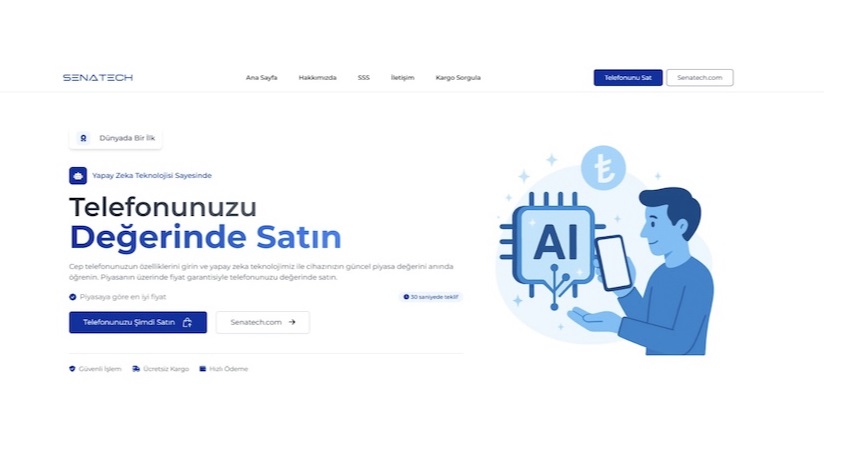 “Senatech’in hayata geçirdiği yapay zeka destekli cihaz değerleme sisteminde kullanıcılar ilk adımda cihazlarının marka, model ve durum bilgilerini giriyor. Sistem akıllı telefonların her birini teknik özellikleri, pazar trendleri, müşteri geribildirimlerinin yanı sıra; cihaz ömrü, garanti durumu, kullanım amacı gibi 140a yakın özelliği kapsamlı bir veri analiziyle değerlendiriyor. Ardından kullanıcılara saniyeler içinde gerçek zamanlı bir teklif sunuluyor. Teklifin onaylanması halinde ise kullanıcılar telefonun kargolayarak ödemesini alıyor.”