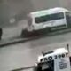 Minibüsün refüje çıkma ve yayanın saniyelerle kurtulduğu anlar, çevredeki iş yerinin güvenlik kamerası görüntülerine yansıdı.