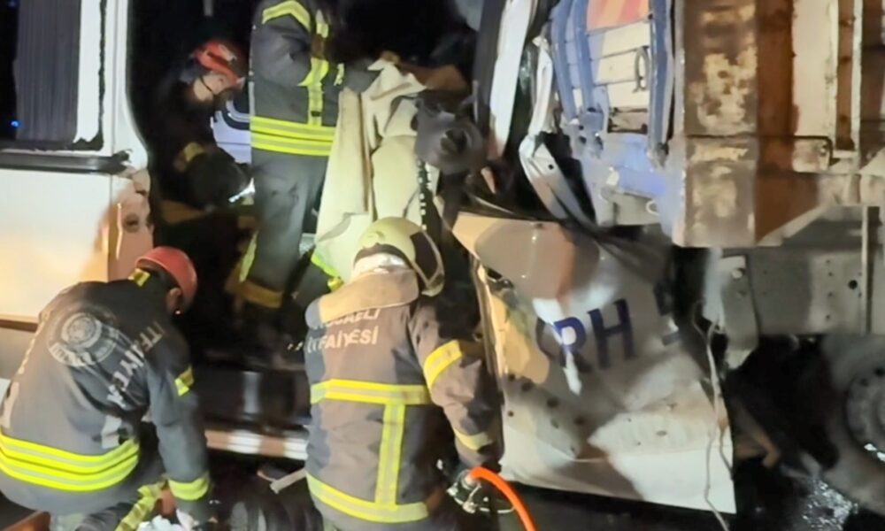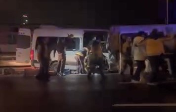 Servis minibüsü, sac yüklü kamyona çarptı: 7 yaralı