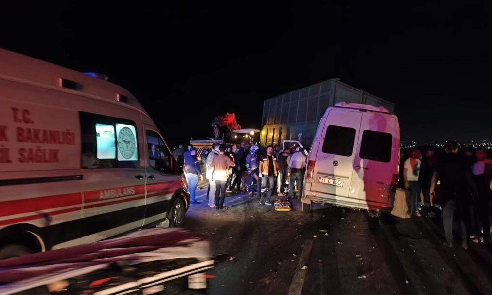 • Hatay'da servis minibüsünün traktör römorkuna arkadan çarptığı kazada 1 kişi öldü 13 kişi yaralandı.Fotoğraf:ARŞİV/Hatay,(DHA)