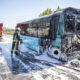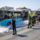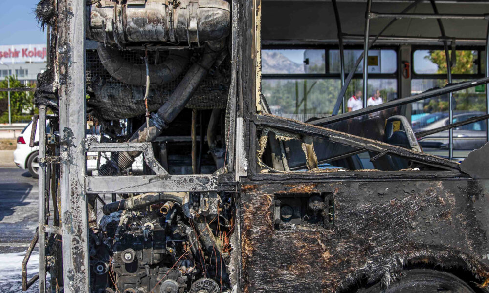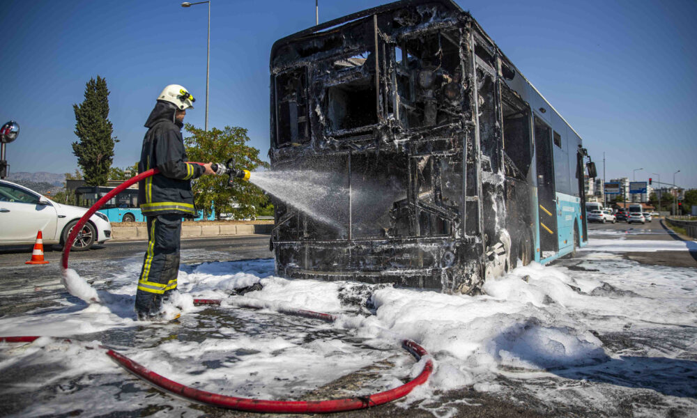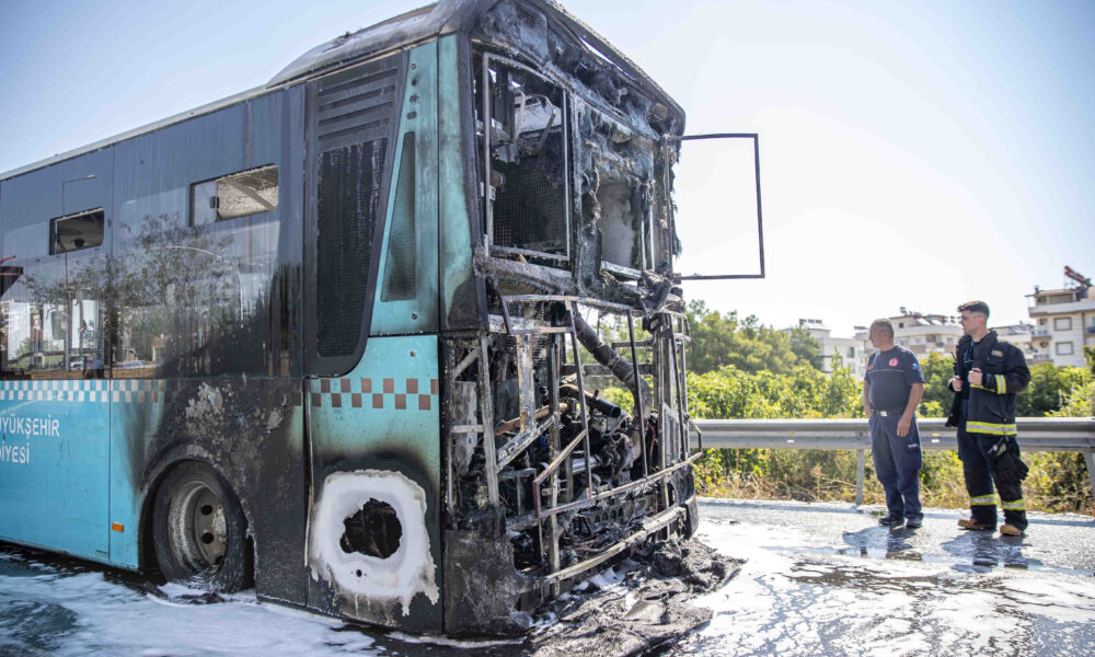 Seyir halinde alev alan belediye otobüsü yandı; sürücü yolcuları zamanında tahliye etti