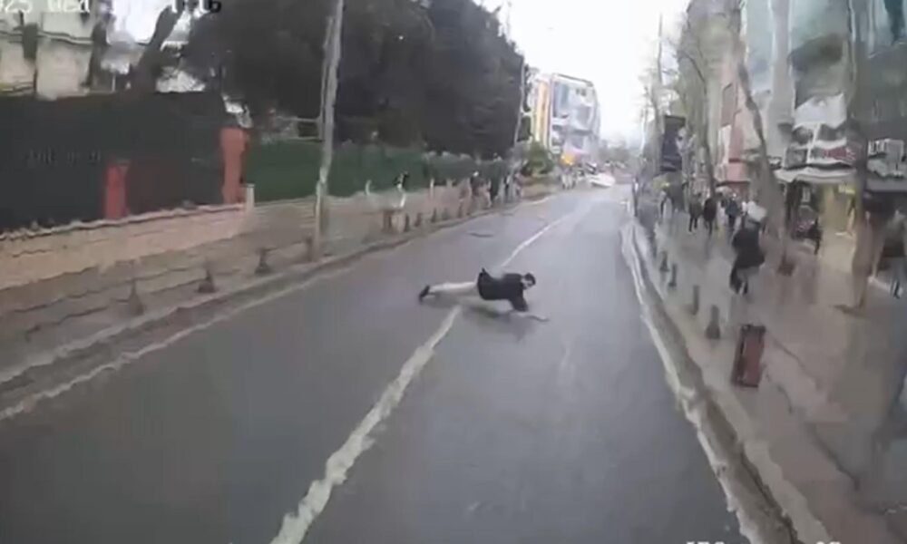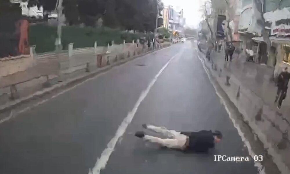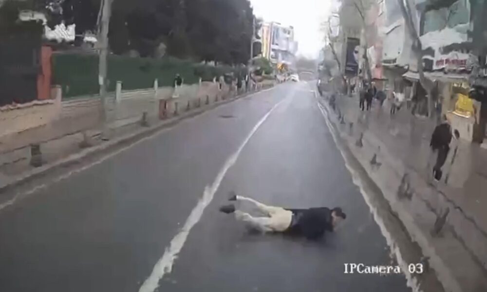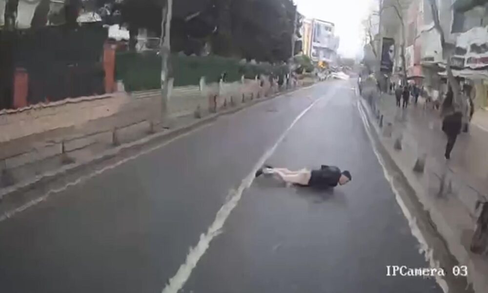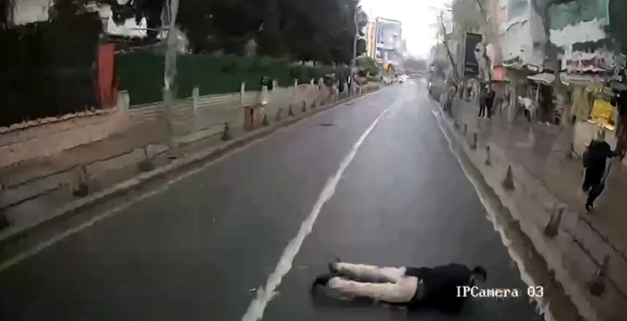 Seyir halindeki otobüsün önüne yattı; o anlar kamerada