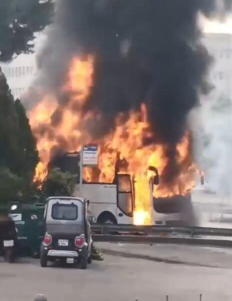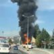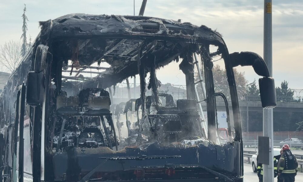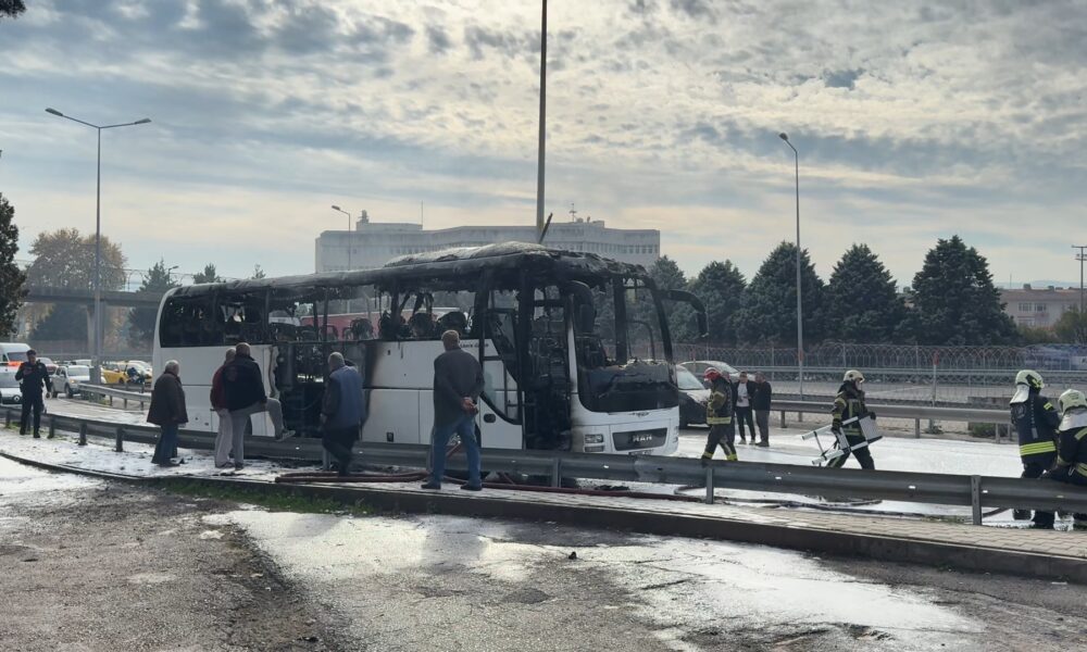 Seyir halindeki yolcu otobüsü alev alev yandı