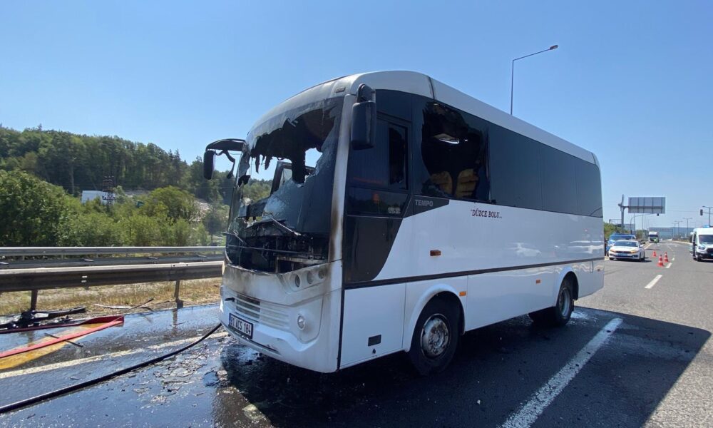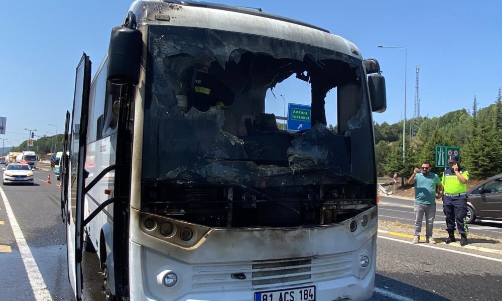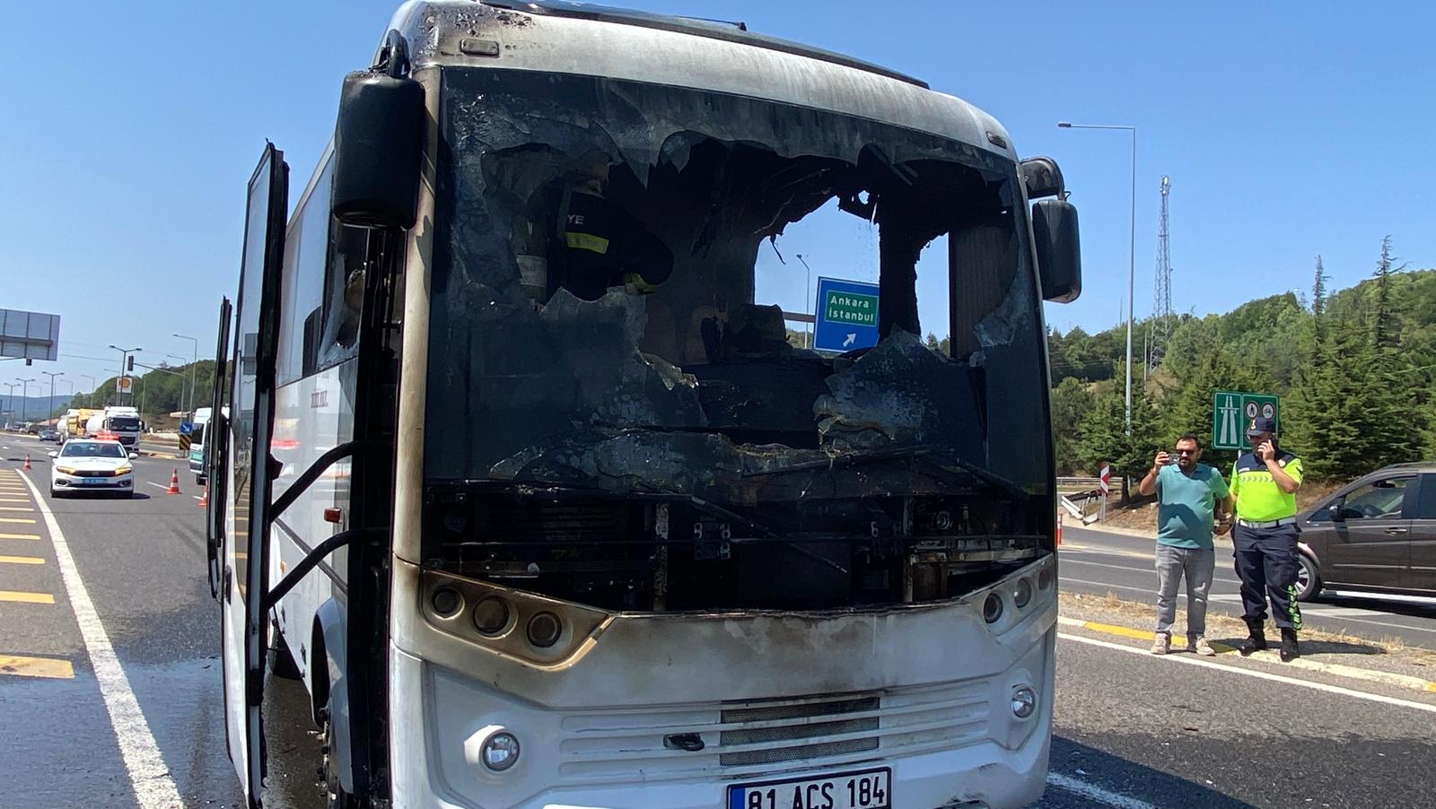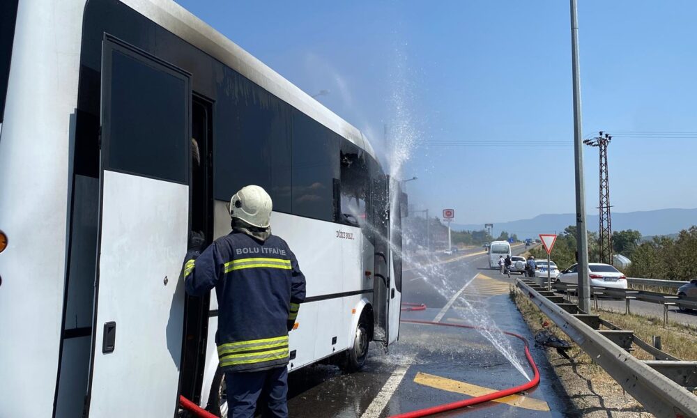 Ankara yönüne giden sürücüsünün ismi öğrenilemeyen 81 ACS 184 plakalı midibüs, saat 14.00 sıralarında D-100 kara yolunun Abant kavşağı mevkisine geldiğinde motor kısmından alev aldı. Midibüs sürücüsü yangını fark edip, aracı yol kenarına park edip, itfaiyeye haber verildi. Olay yerine gelen itfaiye ekiplerinin müdahalesi sonucu yangın söndürüldü. Midibüs zarar görürken olayla ilgili soruşturma başlatıldı.