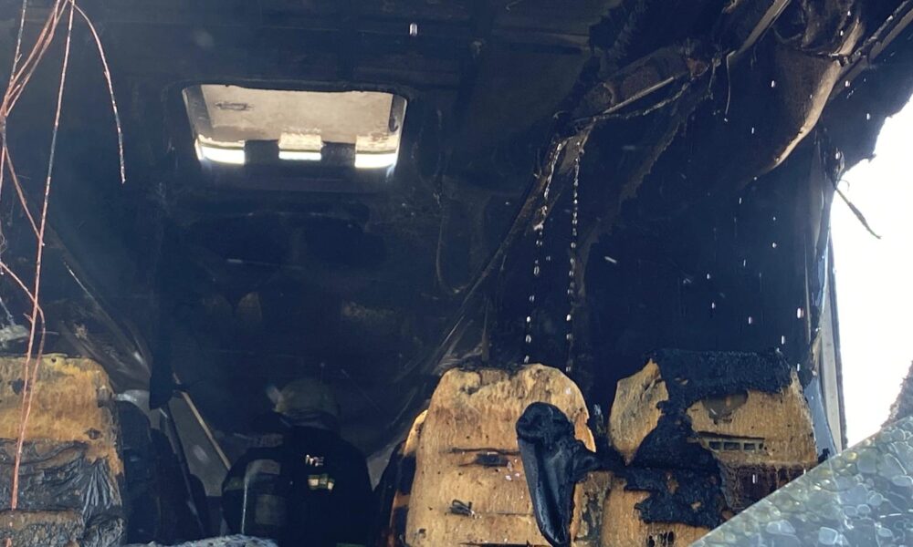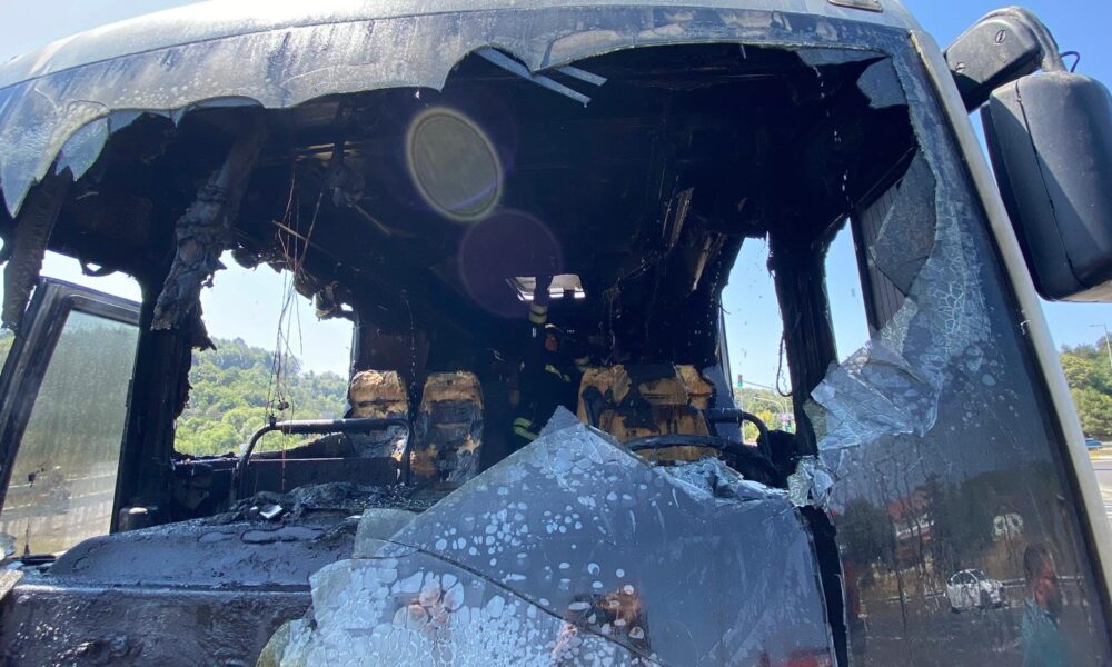 • Bolu'da, D-100 kara yolunda seyir halindeki midibüsün motor kısmında çıkan yangın itfaiye tarafından söndürülürken, araçta hasar oluştu. Fotoğraf: Zübeyde ÖZMEN/Bolu,(DHA)
