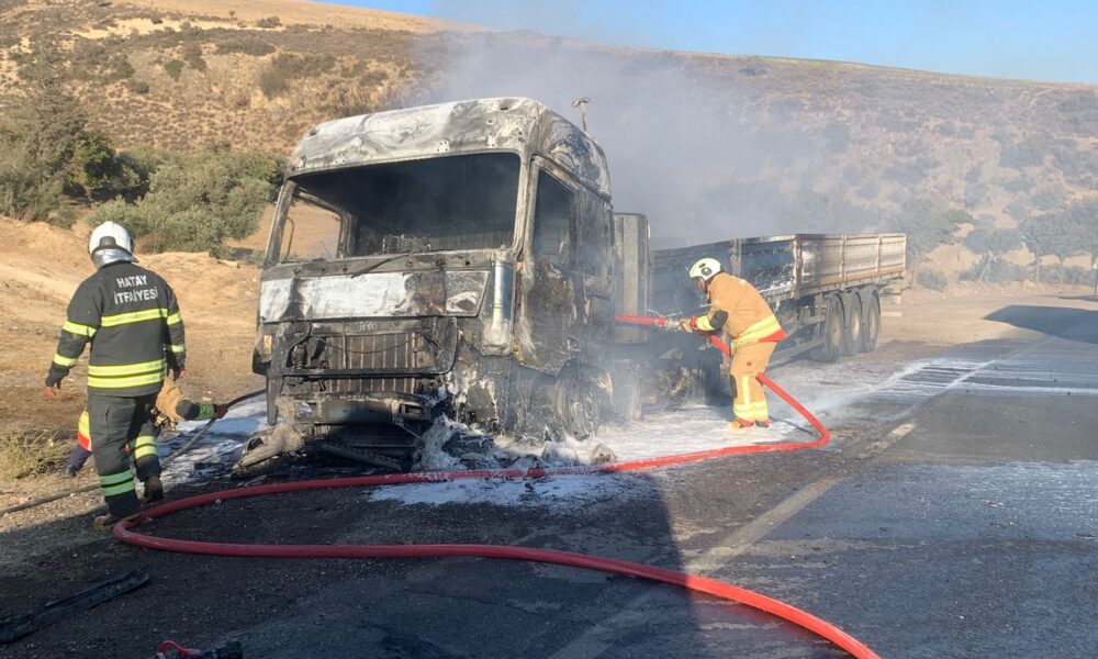 Belen ilçesi Topboğazı yakınlarında seyir halindeki plakası ve sürücüsü öğrenilemeyen TIR, kupa kısmından alev aldı. Sürücünün yolun sağına çekip, dorseden ayırdığı TIRı kısa sürede alevler sardı. İhbar üzerine bölgeye sevk edilen itfaiye ekibi, TIRdan yükselen alevleri kontrol altına aldı.