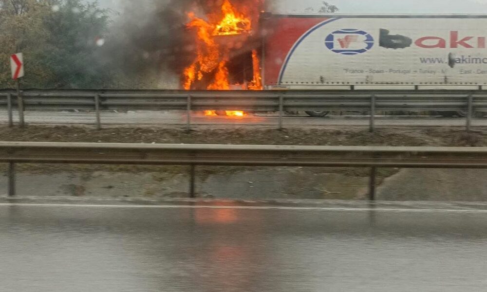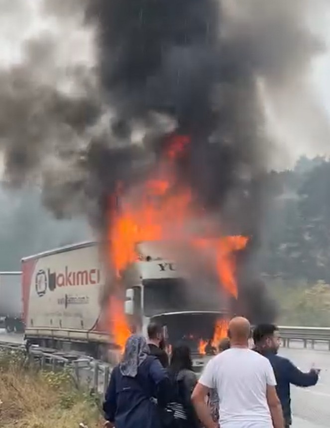 Seyir halindeyken alev alan TIR yandı