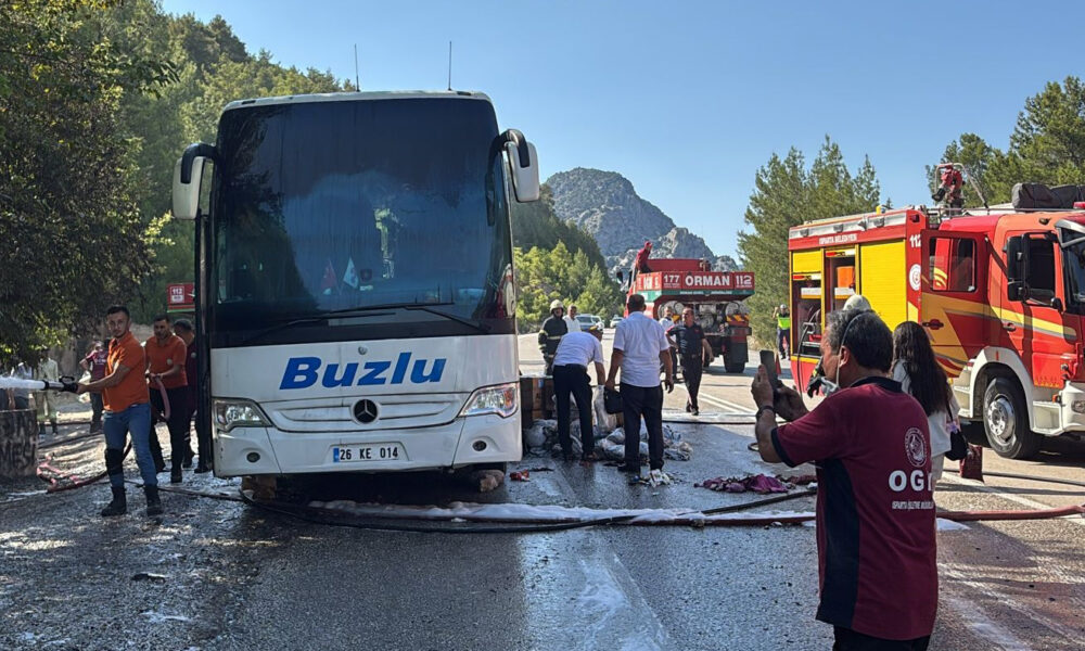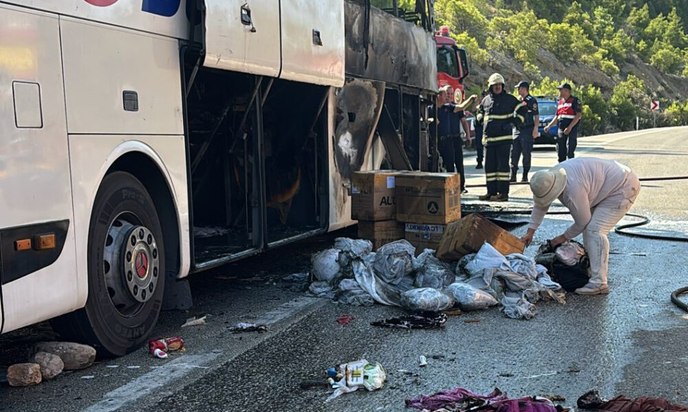Seyir halindeyken alev alan yolcu otobüsü yandı
