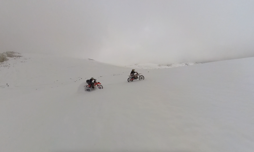 Havaların soğuması ile Erzincanda kar etkili olurken, Ergan Dağı Kayak Merkezinin zirvesi beyaz örtü ile kaplandı. Kar kalınlığının 40 santimetreye yaklaştığı zirvede motosiklet sürmek ve kayak yapmak isteyen Enduro Motorsporları üyesi bir grup, kent merkezinden yola çıktı. Ergan Dağına ulaşan grup, karlı zirvede motosiklet sürdü. Kar üstünde bir süre motosikletle tur atan grup, daha sonra sezonun ilk kayağını yaptı.