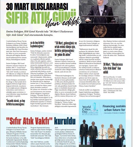 CUMHURBAŞKANI Recep Tayyip Erdoğanın eşi Emine Erdoğanın öncülüğünde 2017de başlatılan Sıfır Atık Hareketinin çalışmalarını konu alan Sıfır Atık gazetesinin yeni sayısı yayımlandı. Çevre, Şehircilik ve İklim Değişikliği Bakanı Mehmet Özhaseki, “Hem matbu olarak hem de dijitalde dolu dolu içeriklerle yayınlanan gazetemiz okuyucularıyla buluştu” dedi.Çevre, Şehircilik ve İklim Değişikliği Bakanı Mehmet Özhaseki, Eğitim ve Yayın Dairesi Başkanlığı tarafından, Sıfır Atık gazetesinin yeni sayısının 30 Mart Uluslararası Sıfır Atık Gününde okuyucuyla buluştuğunu duyurdu. Bakan Özhaseki, sıfır atık konusunda yapılan proje ve faaliyetlere yer verilen gazetenin tamamının, geri dönüştürülmüş kağıtlardan hazırlandığını belirtti. Gazetenin yeni sayısının içeriğinden bahseden Bakan Özhaseki, “Saygıdeğer Emine Erdoğan Hanımefendinin öncülüğünde 2017de başlatılan Sıfır Atık Hareketinin çalışmalarını konu alan Sıfır Atık gazetemizin yeni sayısı bugün yayımlandı. Hem matbu olarak hem de dijitalde dolu dolu içeriklerle yayınlanan gazetemiz okuyucularıyla buluştu. Bu vesileyle Sıfır Atıkın bir dünya markası haline gelmesine öncülük eden Saygıdeğer Emine Erdoğan Hanımefendiye şükranlarımı sunuyorum. Cumhurbaşkanımız Sayın Recep Tayyip Erdoğanın liderliğinde; Türkiye Yüzyılına uygun olarak daha temiz ve daha yeşil bir dünya için Sıfır Atık başta olmak üzere pek çok projemizi hayata geçirmeye devam edeceğiz” ifadelerini kullandı.EMİNE ERDOĞANIN SÖZLERİ GAZETEDESıfır atık bilincinin oluşturulması ve daha da yaygınlaştırılması amacıyla çıkarılan gazetenin yeni sayının kapağında, Sıfır Atık Hareketini bir dünya markası haline getiren Emine Erdoğanın, Birleşik Arap Emirliklerinin Dubai şehrinde düzenlenen Dünya Hükümetler Zirvesi kapsamında gerçekleştirilen Sürdürülebilir Kalkınma Hedefleri 2045: Dünyamızın Geleceğine Yön Vermek programında yaptığı konuşmasına yer verildi.Gazetede ayrıca, Cumhurbaşkanı Recep Tayyip Erdoğanın, Dubaide katıldığı Birleşmiş Milletler İklim Değişikliği Çerçeve Sözleşmesi 28inci Taraflar Konferansı (COP28) kapsamında düzenlenen Dünya İklim Eylemi Zirvesi’ndeki konuşması da yer aldı. Fransız deniz araştırmacısı Jacques-Yves Cousteaunun torunu Alexandra Cousteaunun Sıfır Atık Hareketine ilişkin övgü dolu sözlerinin de haberleştirildiği gazetede, Çevre, Şehircilik ve İklim Değişikliği Bakanı Mehmet Özhaseki’nin Çevresel ve Sosyal Yönetim Sistemi açılış toplantısında yaptığı açıklamaların yanı sıra sıfır atık içerikli pek çok bilgi de yer aldı. Sıfır Atık gazetesinin dijital haline, bakanlığın web sayfasından ulaşılabiliyor.
