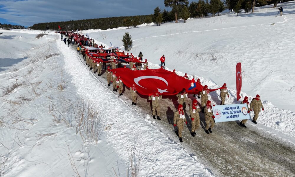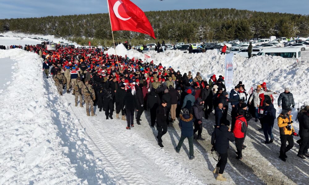Sarıkamış Harekatı sırasında donarak şehit olan binlerce Mehmetçik’i anmak için 'Türkiye Şehitleriyle Yürüyor' temasıyla düzenlenen yürüyüş eksi 22 derecede gerçekleştirildi. Fotoğraf: Oktay POLAT/Sarıkamış (Kars),(DHA)