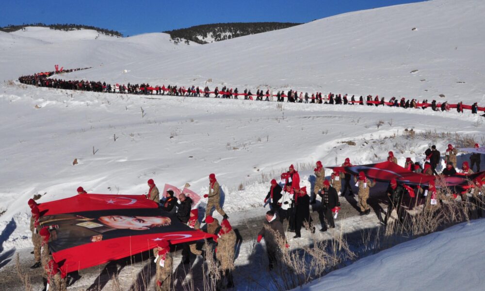 Sıfırın altında 22 derecede Sarıkamış şehitleri için yürüdüler