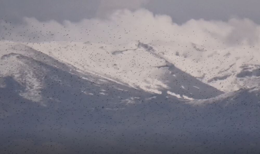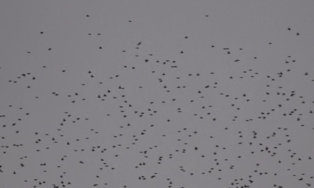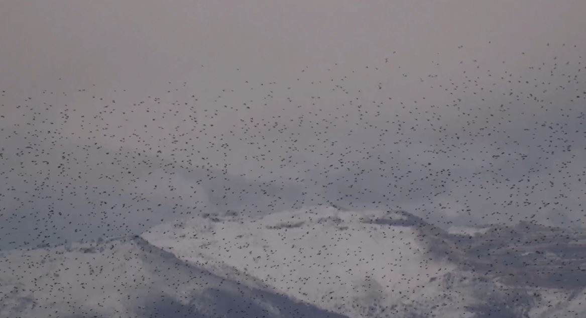 Sığırcık kuşlarının uyum halinde aynı yöne uçtuğu anlar kamerada