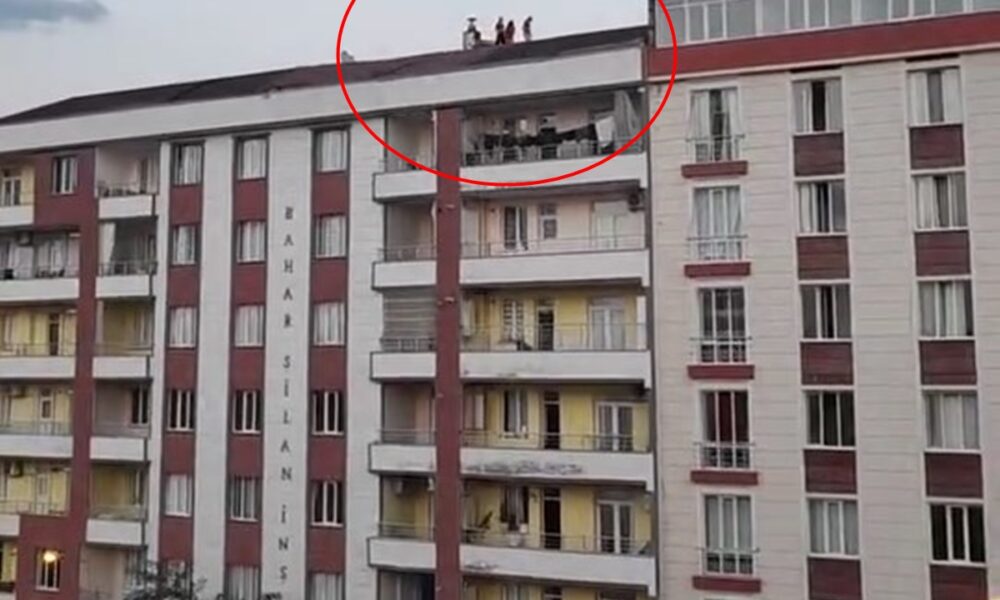 Siirt’te 7 katlı binanın çatısında tehlikeli fotoğraf çekimi