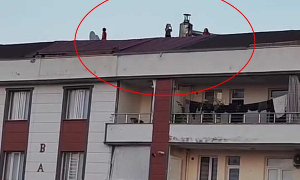 Kooperatif Mahallesinde, dün akşam saatlerinde, 7 katlı binanın çatısına çıkan 3 genç kız, fotoğraf çekmeye başladı. Düşme tehlikesine rağmen rahat tavırlarla fotoğraf çekimi yapan kızlar, çevredeki bir kişinin cep telefonu kamerasıyla görüntülendi.