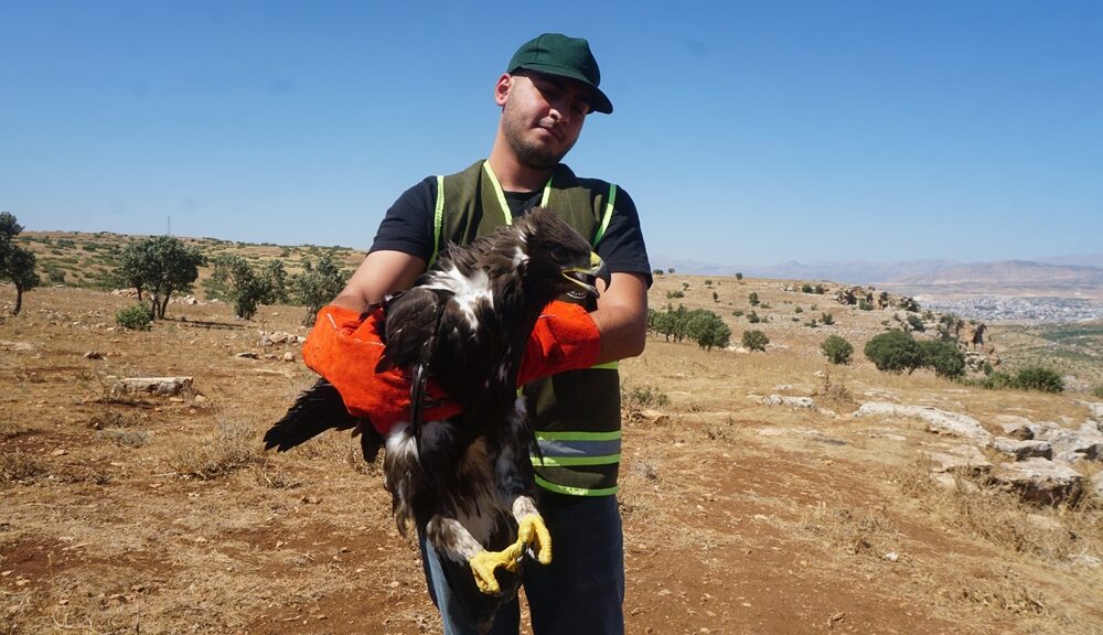 Siirt’te bitkin halde bulunan kaya kartalı, tedavisinin ardından doğaya bırakıldı