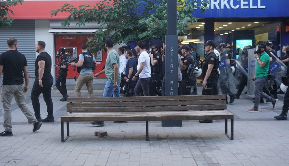 Hakkari Belediye Başkanı DEM Partili Mehmet Sıddık Akışın gözaltına alınıp görevden uzaklaştırılması ve yerine Hakkari Valisi Ali Çelikin belediye başkan vekili olarak atanmasını protesto için Siirt’te aralarında DEM Parti Milletvekili Sabahat Erdoğan Sarıtaş ve Siirt Belediye Başkanı Sofya Alağaş’ın da olduğu grup, Kızılay iş merkezi önünde toplandı. Grup, basın açıklaması yapmak istedi. Bunun üzerine polis, basın açıklamasının yasak olduğunu ve yapılması halinde müdahale edileceği uyarısında bulundu. Ancak grup açıklama yapmakta ısrar edince, polis biber gazı ve TOMA ile müdahalede bulundu. Ara sokaklara da kaçan gruptan 3 kişi gözaltına alındı.