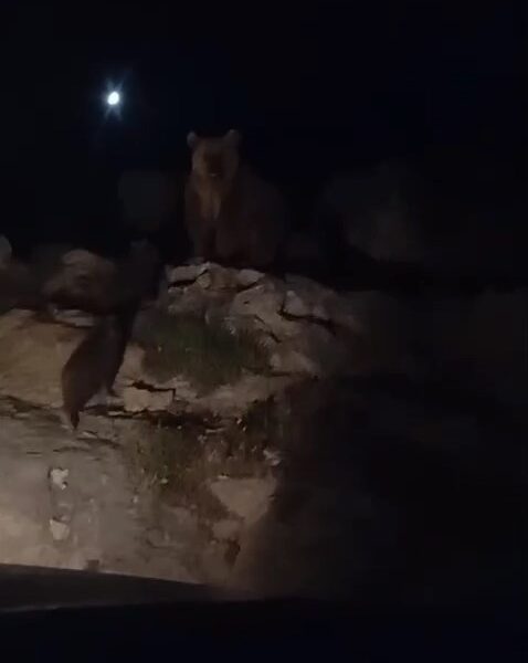 Yerliçoban köyü yolunda dün akşam saatlerinde aracıyla ilerleyen Mahmut Acar, köy yoluna inen ayı ve 3 yavrusunu cep telefonu kamerasıyla görüntülendi. Yolda ilerleyen ayılar, bir süre sonra bölgede gözden kayboldu.