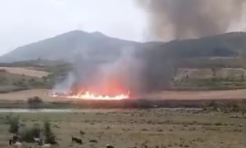 Siirt’te yıldırım düşmesiyle çıkan yangında 40 dönüm buğday ekili arazi zarar gördü