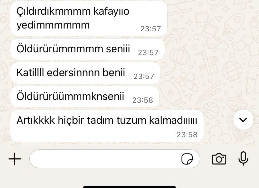 Can güvenliği olmadığını ve korktuğunu söyleyen E.K., “Koruma kararı çıkarttım 1 aylığına. Ayın 10unda bitti ama 10unu 11ine bağlayan gece beni arıyor. Bir şeylerin peşinde hala. Korkuyorum, kesinlikle can güvenliğim yok. Çünkü bana, Bu olay ortaya çıkarsa sana şöyle yaparım, seni hiç kimse bulamaz, kimse benden şüphelenmez diyordu. Ailemin ve kendi can güvenliğimden çok korkuyorum” dedi.