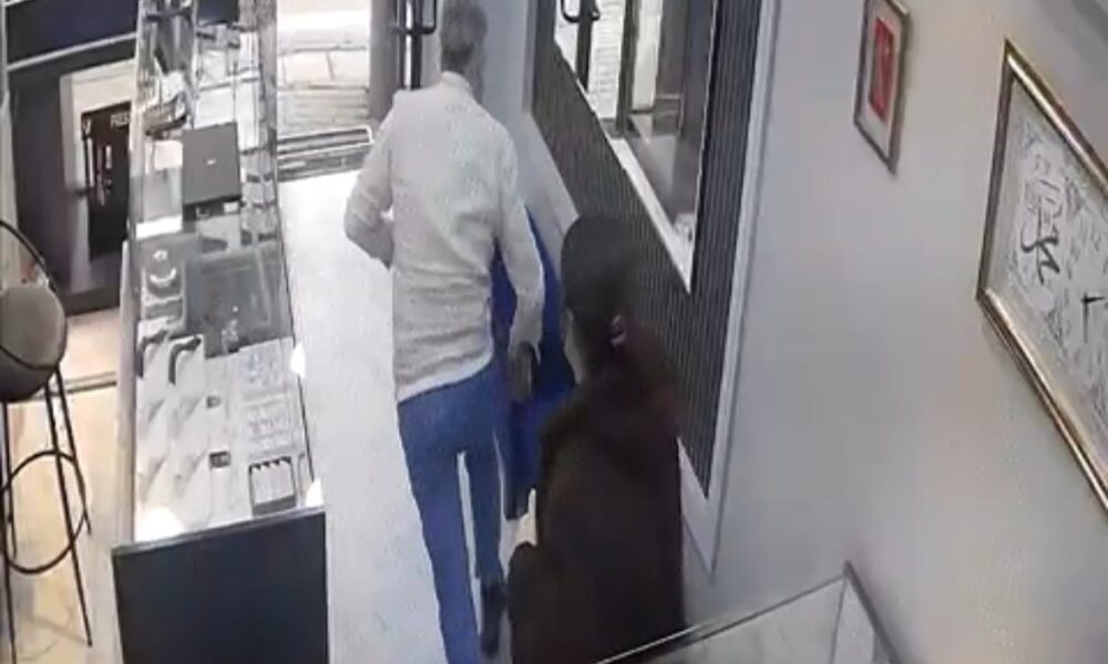 Silahla soymaya geldiği kuyumcu azarlayınca kaçtı; o anlar kamerada