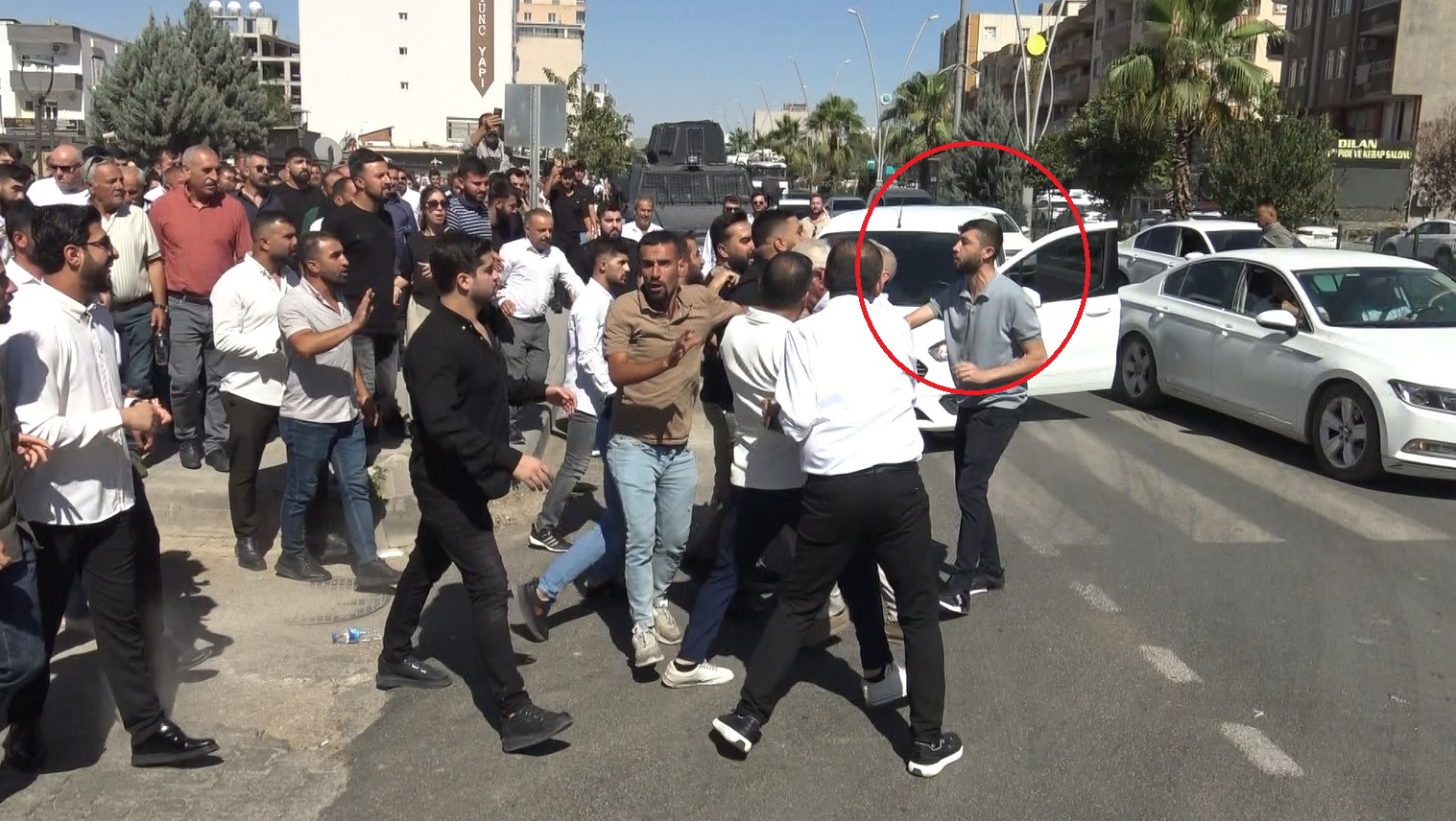 Yürüyüş sırasında bir kişi, kalabalığın attığı ‘Jiyan istifa’ sloganlarına tepki gösterdi. Bunun üzerine kalabalıktan bir grup, söz konusu kişiyi darbetmeye başladı. Yumruklu saldırıya uğrayan bu kişi, çevredekilerin araya girmesiyle kalabalığın arasından çıkarılarak bölgeden uzaklaştırıldı.