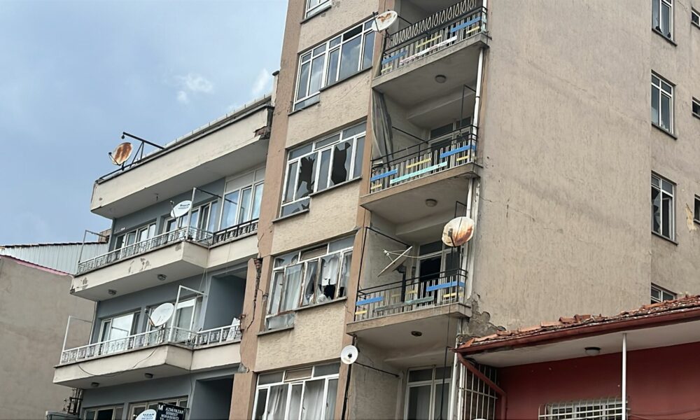 • Balıkesir Sındırgı ilçesinde, meydana gelen depremlerin ardından bir binada çatlaklar oluşurken bina çevresinde güvenlik önlemleri alındı. Fotoğraf: Balıkesir,(DHA)