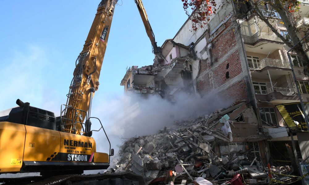 • Balıkesir'in Sındırgı ilçesinde 27 Ekim'de meydana gelen 6.1 büyüklüğündeki deprem sonrası hasar gören yüksek katlı binaların, risk oluşturan bölümleri için de traşlama ve kat düşürme çalışması başlatıldı. Fotoğraf: Balıkesir,(DHA)