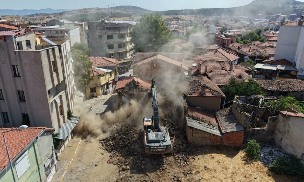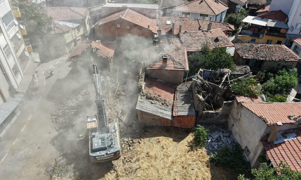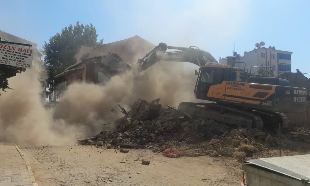 Sındırgı’da hasarlı binaların yıkımı sürüyor
